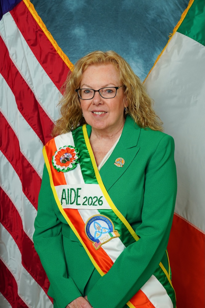 Ellen Frances Greffenius was born in upper Manhattan, New York, the third child of four, to Philip D. and Kathleen (née McIntyre) Morris. She is surrounded by an older sister and brother, Catherine and Philip, and a younger brother, James. Ellen’s paternal grandparents emigrated from Counties Mayo and Tipperary, and her maternal grandparents, Waterford and Cavan. Ellen credits her parents for instilling in her a strong Catholic faith, and she attended Catholic schools throughout her education. The Morris Family moved to Ossining in 1968 where Ellen attended St. Augustine Elementary School and later Kennedy Catholic High School in Somers. She went on to earn her undergraduate degree from the College of Mount Saint Vincent in Riverdale. After beginning her career in advertising in New York City, Ellen made the decision to return to school to pursue nursing, a decision she has never regretted. She graduated with a Bachelor of Science in Nursing from New York University and spent several years working in the Emergency Department at Weill Cornell in Manhattan. Becoming a nurse has given her tremendous pride and purpose, offering her a career that is both rewarding and meaningful. Ellen later advanced her education with a master’s in nursing, and presently works as a Family Nurse Practitioner at Pace University, which has campuses in both New York City and Pleasantville. Ellen married David Greffenius on October 31, 2010. While Ellen enjoyed Irish step dancing in her younger days, she now cherishes Irish music. Ellen is a member of LAOH Division 18 in Peekskill where she presently serves as Recording Secretary, having previously served as Missions & Charities officer in 2022. She is a member of the American College Health Association (ACHA), the American Nurses Association (ANA) and the New York State Nurses Association (NYSNA). Ellen and David currently reside in Croton, and are parishioners of St. Augustine’s Church in Ossining. Ellen is deeply proud of her heritage as a second-generation Irish American and is both honored and privileged to have been selected as an Aide to the Grand Marshal for the 265th NYC St. Patrick’s Day Parade